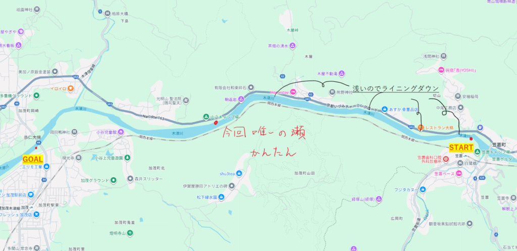 木津川は初心者にはちょうどいいし俺もパックラフトを最近買って関西の有名どころの川を制覇したいと思ってたからちょうどよかったんじゃないかな。